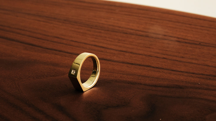 12mm Square-shaped signet face, in solid Silver 925, with a sustainably sourced Diamond set in the middle of our textured backdrop. 2mm Diamond with 0.05 carat. Lab-grown and set by hand here in Australia.